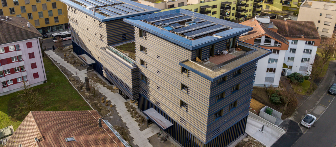 L'edificio commerciale e residenziale di sei piani Casa del legno va ben oltre lo stato dell'arte delle costruzioni in legno ed è un progetto vetrina per le costruzioni rispettose del clima e dell'economia circolare. Il team di architetti e il committente Pirmin Jung hanno sviluppato un concetto architettonico di alta qualità che sfrutta i vantaggi del legno in molti modi attraverso l'applicazione di tecnologie innovative. L'edificio tiene pienamente conto della sostenibilità nelle sue tre dimensioni di economia, società e ambiente ed è certificato Minergie-P-ECO e SNBS Platino.