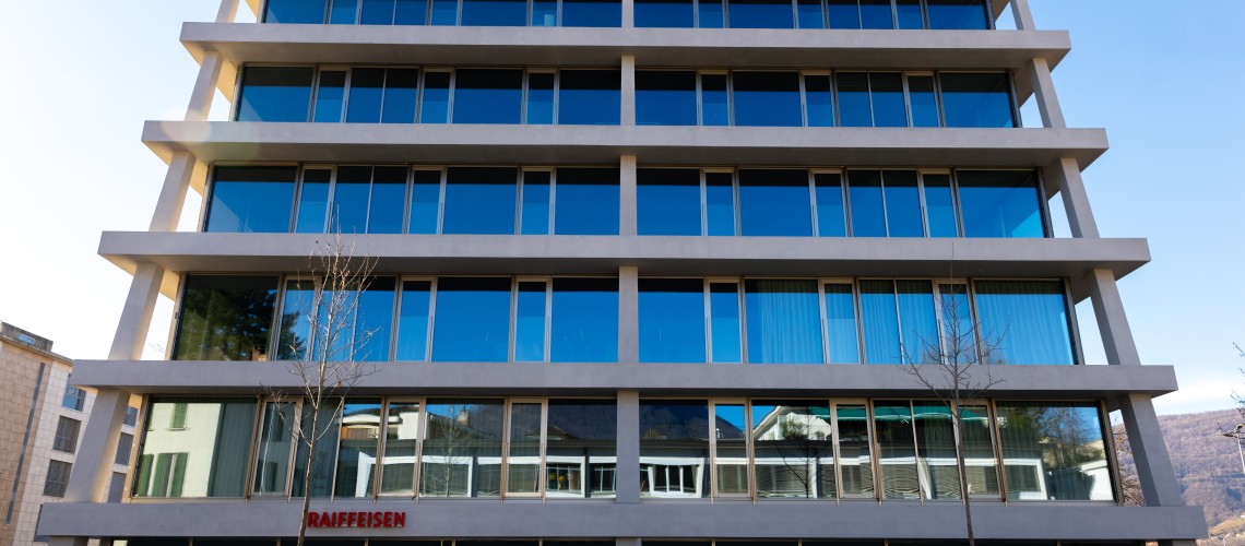 Il progetto del nuovo edificio è stato affidato all’architetto Aldo Celoria dello studio di architettura celoria Architects di Balerna e rappresenta un esempio virtuoso nell’ambito del costruire per il futuro. Il progetto si caratterizza per la trasparenza che alimenta l’idea di costruire un edificio leggero ed elegante quale presupposto al dialogo tra la banca, il cliente e il territorio. La realizzazione evidenzia l’attenzione all’ecologia di ogni singolo processo e materiale, compreso il calcestruzzo armato che è completamente riciclato. Rispetto allo standard Minergie base, per Minergie-P l'involucro termico dell'edificio è ancora meglio isolato e verificato tramite un test di tenuta all’aria. Il risultato è la massima efficienza energetica, qualità costruttiva e un comfort interno perfetto. Il complemento ECO invece è caratterizzato invece da un edificio particolarmente salubre ed ecologico. Mentre lo standard SNBS-Edificio (Standard costruzione sostenibile Svizzera) tiene conto di tutte le dimensioni della sostenibilità. Seguendo questi standard, idealmente combinati tra loro è possibile realizzare edifici di elevata qualità, orientati al futuro e che danno un contributo ecologico, sociale ed economico.