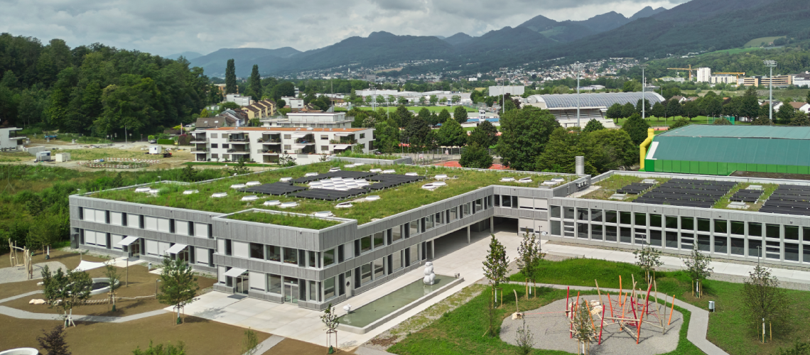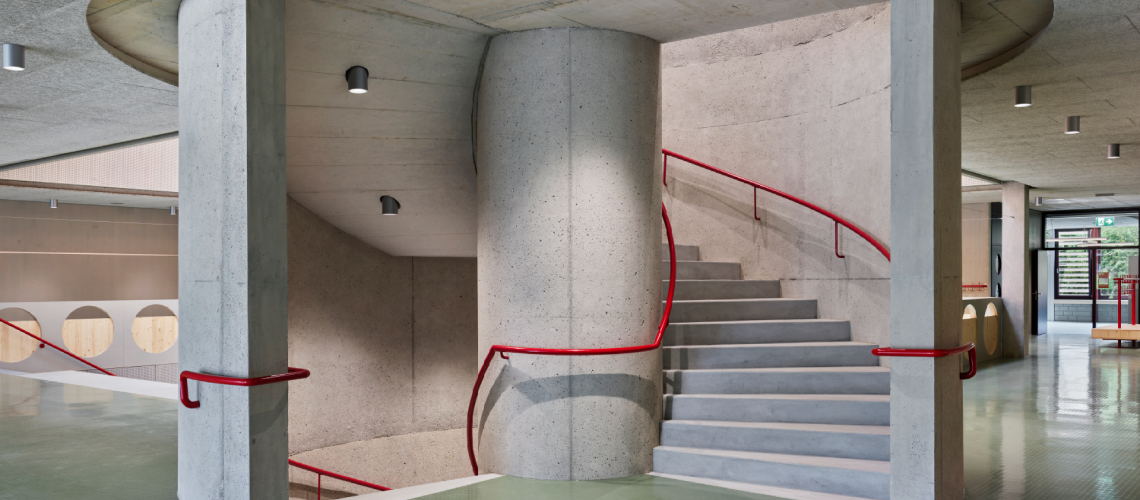 Con la sua tipologia a mulino a vento e gli spazi esterni differenziati, il complesso scolastico Kleinholz a Olten Süd crea un polo spaziale nel quartiere. Il parco è un ponte tra il municipio, gli edifici residenziali e gli impianti sportivi e costituisce un generoso spazio verde. L'edificio offre chiare accessibilità, una forte connessione tra interno ed esterno e paesaggi di apprendimento flessibili con una varietà di costellazioni di stanze. All'interno, corridoi illuminati naturalmente, sale per gruppi e zone di apprendimento aperte consentono una didattica contemporanea, individuale e collaborativa. La scala del forum con il foyer funge da fulcro per gli eventi e crea uno spazio per lo scambio e la comunità. La scalinata del forum con il foyer funge da fulcro per gli eventi e crea uno spazio per lo scambio e la comunità. Il nuovo edificio diventa così il centro vivace di uno spazio aperto multifunzionale di quartiere con un'alta qualità di soggiorno per tutti i gruppi di utenti.