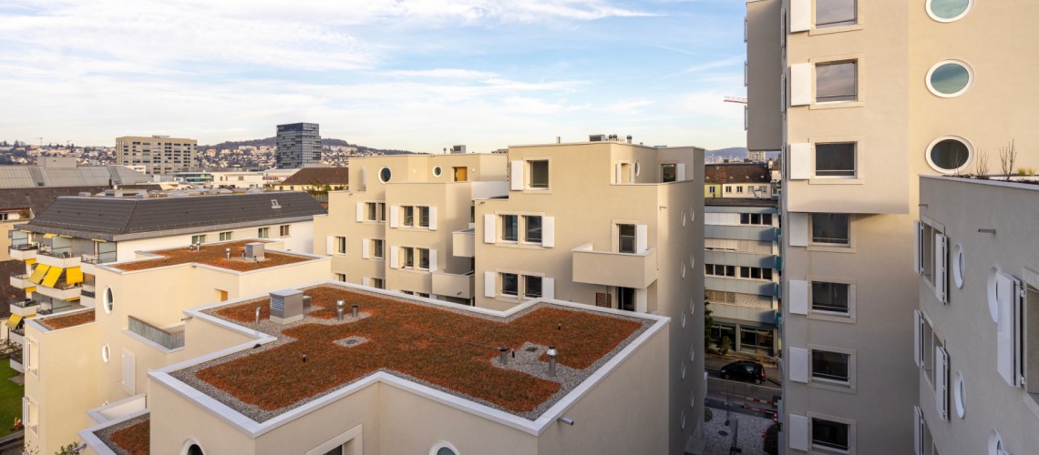 Il progetto riprende le caratteristiche tipiche delle case cittadine di Zurigo e le reinterpreta in un complesso compatto ma aperto. L'obiettivo era creare un ambiente urbano che rispecchiasse il carattere specifico del luogo e allo stesso tempo contribuisse in modo significativo alla densificazione urbana.