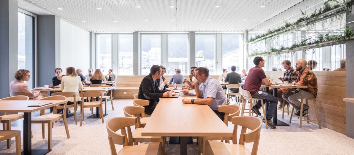A partire dall’estate 2020 il nuovo edificio amministrativo "Sinergia" a Ovest di Coira, offre circa 440 posti di lavoro per i dipendenti cantonali. Questa costruzione, raggruppa diverse aree amministrative in un solo luogo, permette al Cantone di contenere i costi, sfruttare le sinergie e ottimizzare i processi. I nuovi posti di lavoro sono attraenti anche per i dipendenti: i quali invece di lavorare in uffici singoli o doppi, ora lavorano in un ufficio open-space, il cosiddetto "posto di lavoro 4.0". Gli utenti possono scegliere il loro posto di lavoro in modo flessibile a seconda delle loro esigenze del momento. In questo modo, il Cantone mira a raggiungere una de-gerarchizzazione e ottenere un ambiente di lavoro moderno.